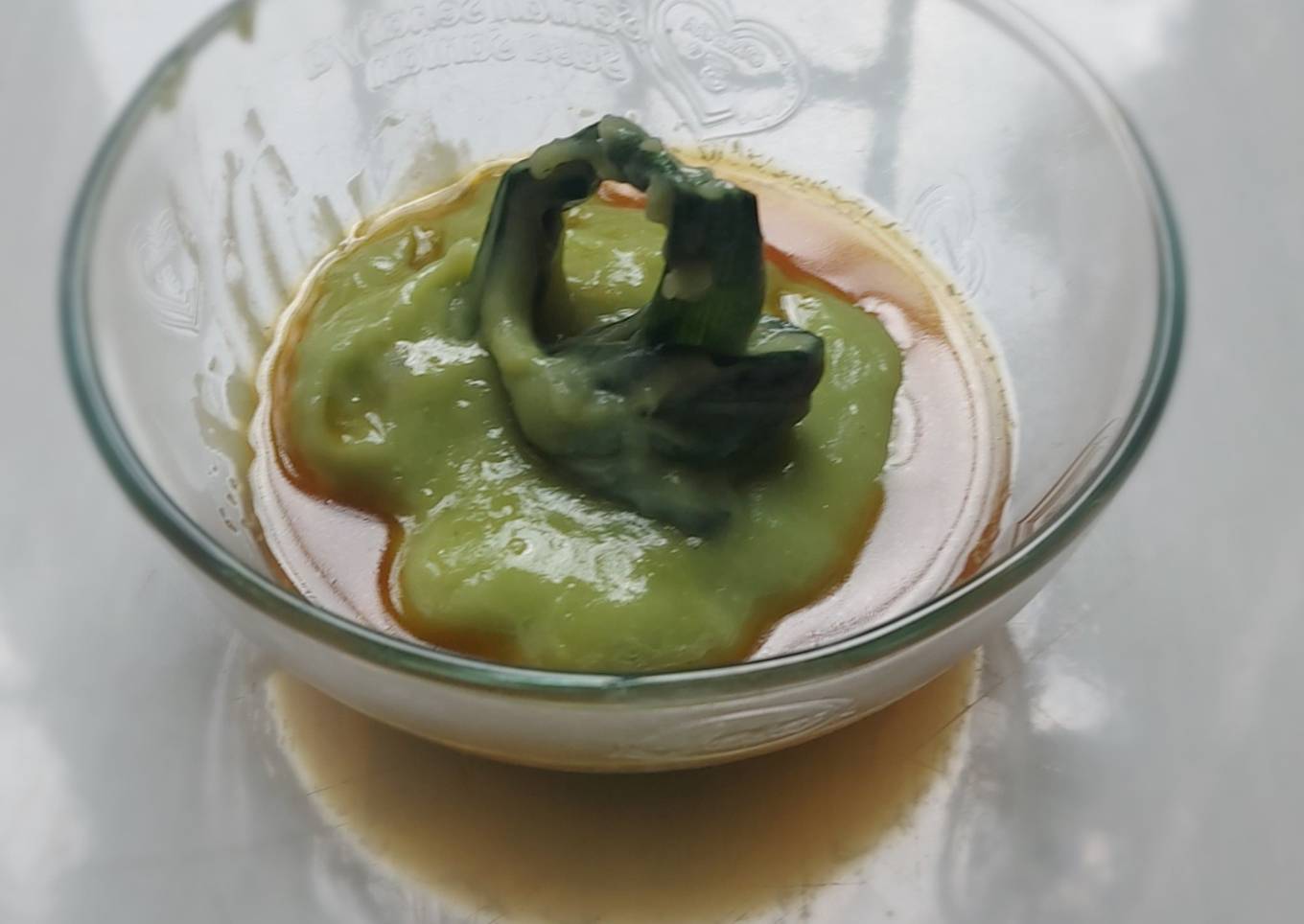 - Blender 11 lbr daun pandan dengan 50cc air, lalu saring. Sisihkan untuk pewarna bubur.
